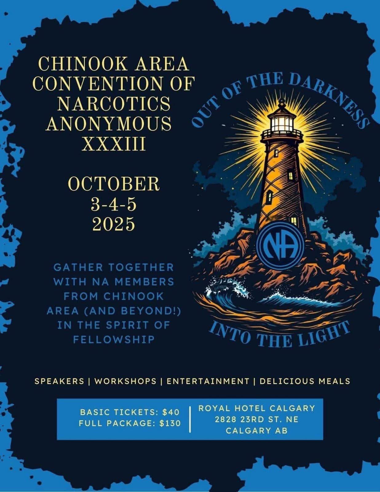 ![]() Join the Chinook Area of Narcotics Anonymous for our Annual Convention - Out of the Darkness Into the Light
